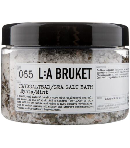 L:a Bruket 065 Sea Salt Bath Mint er et produkt, som kan gøre dit karbad eller fodbad til en helt speciel oplevelse. Dette badesalt er med en frisk duft af mynte, som har en vitaliserende og blødgørende effekt på huden, samtidig med at duften mindsker stress og øger koncentrationsevnen. Her får man virkelig en badesalt udover det sædvanlige med en skøn blanding af ubleget havsalt, æterisk mynteolie og mynteblade. Tag dit karbad til næste niveau, og nyd få en lækker spaoplevelse hjemme hos dig selv med L:a Bruket 065 Sea Salt Bath Mint. Fordele: Badesalt Med en frisk duft af mint Virker vitaliserende og blødgørende Mindsker stress og øger koncentrationsevnen Naturlige ingredienser Økologisk Vegansk Parabenefri Uden hormonforstyrrende stoffer Anvendelse: Kom en håndfuld badesalt i badevandet Lad saltet opløse sig og lad dig synke ned i det varme vand Ingrediensliste: Sodium Chloride, Mentha piperita leafs, Mentha piperita herb oil, Linalool, Limonene ...