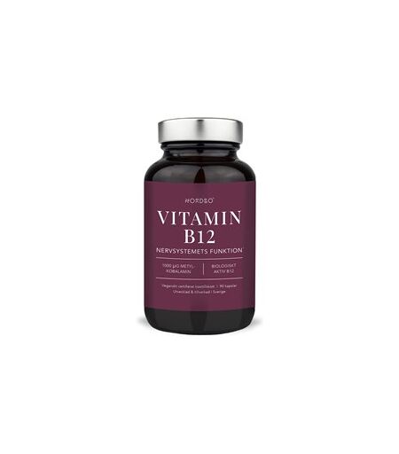 NORDBO B12 er et højdosis vitamin B12 supplement med 1000 µg methylcobalamin. Methylcobalamin er en biologisk aktiv form af B12, som giver hurtigere optagelse end de former, som kroppen skal omdanne, før de kan optages. Vitamin B12 bidrager bl.a at opretholde normal nervesystemfunktion, normal psykologisk funktion og normal immunsystemfunktion. Fremstillet i Sverige og certificeret med I'm Vegan af Djurens Rätt. Dosis og Anvendelse 1 kapsel om dagen. Ved synkebesvær kan kapslen åbnes og indholdet drysses i kold væske. ...
