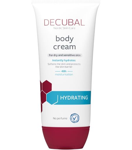 Fugtgivende creme til normal, tør og sensitiv hud. Formuleret med den patenteret teknologi AQUAXYL fra en naturlig kilde og hyaluronsyre der intensivt fugter huden og beskytter hudbarrieren. Klinisk testet til at give hurtig og langvarig fugt i op til 48 timer. Decubal body cream trænger hurtigt ind uden at fedte og efterlader huden blød og smidig. Dermatologisk testet, uden parfume, vegansk og Allergy Certified. Fedtindhold: 19,50% ...