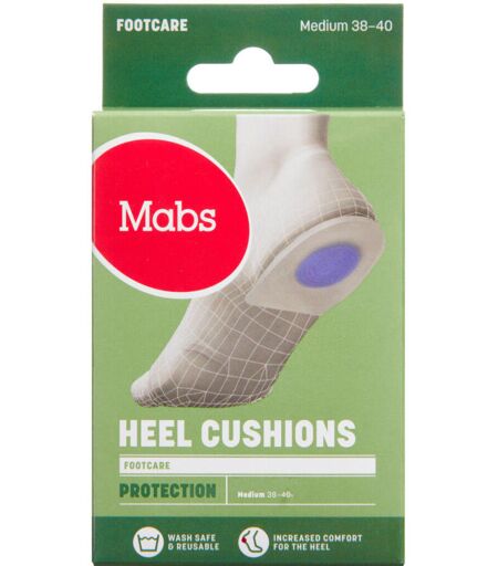 Mabs Fodpleje er beskyttende og plejende produkter mod almindelige fodproblemer såsom hælspore, knyster, hallux valgus, hammertå, hård hud og ligtorne. Kan bruges forebyggende, lindrende og når skaden er sket. Mabs hælindlæg: • Stødabsorberende effekt, øget komfort, især når du står eller går meget. • Lavet af silikone, som gør dem behagelige at gå på. • Sæt med 2 hælindlæg, findes i størrelserne small, medium og large. • Sæt et indlæg i hver sko med den glatte side ned mod skoen. • Husk altid at bruge indlægget i begge sko, selvom du kun har problemer med den ene fod. ...