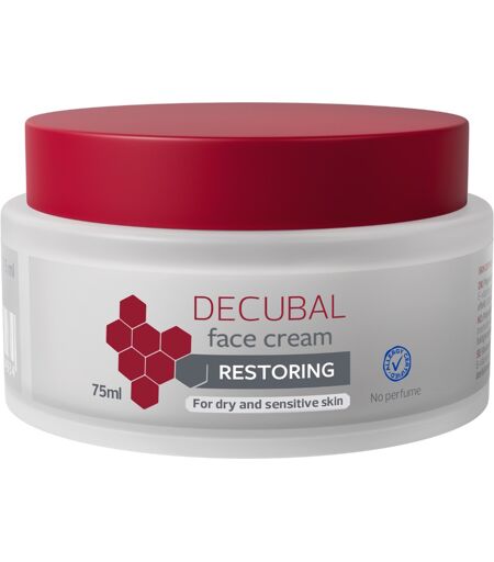 Decubal Face Cream er en nærende og fugtgivende ansigtscreme til tør og sart hud. Med E-vitamin og naturlig olie, der blødgør og plejer huden. Uden parfume. Trænger hurtigt ind i huden og er let at påføre uden at fedte. Cremen er Allergy Certified. Fedtindhold: 18% ...