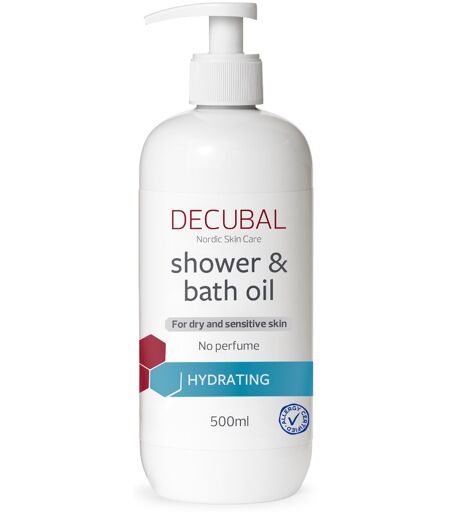 Hvis det daglige brusebad er lig med tør og irriteret hud, så brug Decubal shower & bath oil som familiens vaske- og badeprodukt. Olien er fyldt med ...