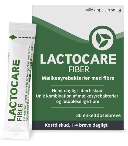 Lactocare Fiber Breve er et kosttilskud med letopløselige fibre og mælkesyrebakterier fordelt på 5 forskellige stammer. Fiber ...
