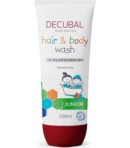 Decubal Junior Hair og Body Wash er et skånsomt vaskeprodukt til både krop og hår hos babyer og børn i alle aldre med normal til tør og sensitiv hud. Denne praktiske 2-i-1 shampoo er velegnet til at vaske og rense både hår og hud nænsomt uden at udtørre. Den er beriget med fugtighedsgivende ingredienser, som hjælper med at bevare hudens naturlige fugtbalance og berolige tør hovedbund, mens blødgørende ingredienser gør håret nemmere at rede ud. Denne Hair og Body Wash er nænsom mod huden og svier ikke ved kontakt med øjnene. Den er desuden både AllergyCertified, uden parfume og farvestoffer, samt dermatologisk testet. Fordele: Hår- og kropsvask Til normal til tør og sensitiv hud Velegnet til babyer og børn i alle aldre Hjælper med at bevare hudens naturlige fugtbalance Beroliger tør hud og hovedbund Gør håret let at rede ud Skånsom formel Svier ikke i øjnene AllergyCertified Uden parfume og farvestoffer Dermatologisk testet Anvendelse: Til håret: Påføres i fugtigt hår. Massér ind i hår og hovedbund, og skyl derefter af med vand Til kroppen: Masseres ind på fugtet hud, og skylles derefter af med vand Kan anvendes dagligt Velegnet til brug i badekarret Ingrediensliste: Aqua, Cocamidopropyl Betaine, Glycerin, Sodium Laureth-5 Carboxylate, Guar Hydroxypropyltrimonium Chloride, Almond Oil Glycereth-8 Esters, Betaine, Lactic Acid, Sodium Benzoate, Sodium Chloride ...