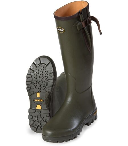 Unisex Pioneer fra Arxus er en klassisk, stabil gummistøvle udviklet til krævende terræn. Velegnet til brug om foråret, sommeren og efteråret. Fremstillet af 100% naturgummi for holdbarhed. Slidstærkt polycotton foer. Læderlignende forstærkning ved hælen og indvendigt. X-Pattern high grip-såler giver godt greb takket være et avanceret dæksystem, og den anatomiske EVA-sål giver god komfort. ...