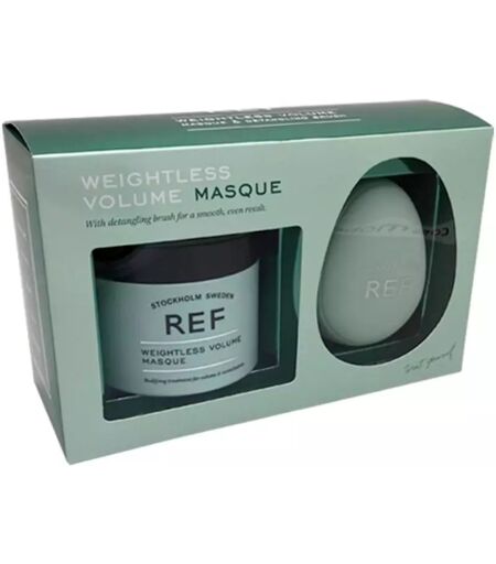 REF. Weightless Volume Masque er et super lækkert sæt, som indeholder en effektiv hårmaske samt en detangler hårbørste til en nem og jævn fordeling af produktet. Hårmasken er til et fint og tyndt hår, som har brug for pleje uden at blive tynget ned. Den lette og volumengivende formel er beriget med nærende økologisk grapefrugtolie, styrkende quinoaprotein samt farvebeskyttende ingredienser. REF. Weightless Volume Masque giver et tyndt hår en fyldig følelse, samtidig med at den fugter og gør håret modstandsdygtigt. Fordele: Volumengivende hårkur Til tynd og fint hår Giver en fyldig følelse Fugter, nærer og styrker Gør håret modstandsdygtigt Tynger ikke Hårbørste inkl. Sulfatfri Vegansk Anvendelse: Påfør jævnt på fugtigt, rent hår Lad sidde i 3-10 minutter Skyl grundigt med vand ...