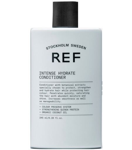REF Intense Hydrate Conditioner er en lækker conditioner med botaniske ekstrakter, der er specielt udvalgt til at beskytte, styrke og gennemfugte håret, samtidig med at hårfarven bevares. Trænger hurtigt ind og mætter håret med rigelig fugt og glans. REF Intense Hydrate Conditioner øger glatheden samt håndterbarheden i håret. Indeholder styrkende quinoa protein samt organisk kokosolie. Fordele: Lækker conditioner Indeholder botaniske ekstrakter Beskytter, styrker og gennemfugter håret Bevarer hårfarven Trænger hurtigt ind Mætter håret med rigelig fugt og glans Øger glatheden og håndterbarheden i håret Indeholder bl.a. quinoa protein og organisk kokosolie Ikke testet på dyr Vegan venlig Anvendelse: Påføres efter shampoo Lad sidde i 1-2 minutter Skyl grundigt med vand ...