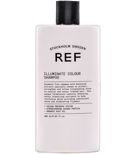 REF Illuminate Colour Shampoo er ideel til farvet hår. Dens helt unikke formel indeholder farvebevarende næringsstoffer der styrker og beskytter håret samt sørger for at hårfarven ikke falmer. REF Illuminate Colour Shampoo er rig på quinoa proteiner og eliminerer krus som efterlader håret med et lækkert glansfuldt finish. En plejende vegan venlig og sulfat-fri shampoo med en sød duft fra organisk acai olie. Fordele Sulfat-fri Ideel til farvet hår Vegan venlig Farvebevarende Beskytter og styrker håret Sød duft fra organisk acai olie Rig på quinoa protein Anvendelse Påføres i vådt hår Tag en passende mængde i hænderne Fordel det jævnt i håret Massér det godt ind i håret til det skummer Skyl derefter håret grundigt ...