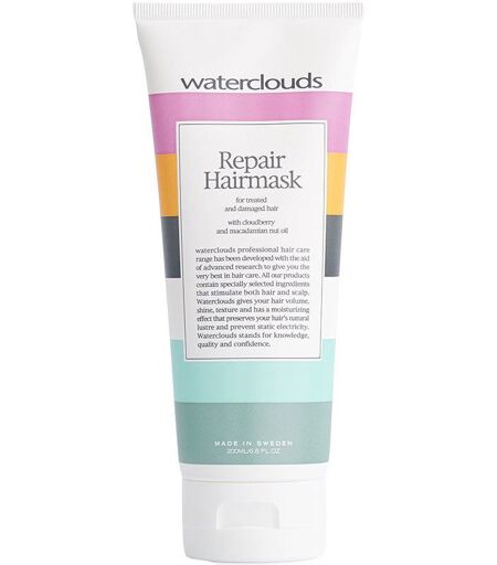 Waterclouds Repair Hairmask er en hårmaske til tørt og behandlet hår, der får håret til at føles blødt og silkeagtigt helt uden at tynge det ned. Tørre hårstrå får alt det næring det har brug for, med hjælp fra multebær- og macadamiafrøolie, der gennemfugter håret og hovedbunden og efterlader dit hår glat og glansfuldt. Derudover er kuren beriget med provitamin B5, som låser fugten inde og beskytter håret mod udtørring. Waterclouds Repair Hairmask indeholder UV-filter, som beskytter håret mod solens stråler. Fordele: Hårkur Til skadet og kemisk behandlet hår Reparerer, fugter og nærer Blødgør og giver glans Fastholder fugten Beskytter mod udtørring UV-beskyttende Vegansk Anvendelse: Påføres i vådt hår Fordel i længderne Ingrediensliste: Aqua, Cetearyl Alcohol, Behentrimonium Chloride, Dimethicone + Laureth-8 + Succinoglycan, Propylene Glycol, Rubus Chamaemorus Seed Oil, Macadamia Ternifolia Seed Oil, Chondrus Crispus Extract, Hydrolyzed Rhodophycea Extract, Panthenol, Cetearyl Ethylhexanoate + Isopropyl Myristate, PEG-7 Glyceryl Cocoate, Glycereth-2 Cocoate, Parfum (Fragrance), Limonene, Benzyl salicylate, Hydroxycitronellal, Hexyl cinnamal, Citronellol, Alpha-isomethyl ionone, Linalool, Geraniol, Citral, Glycereth-7 Caprylate/ Caprate, Hydrolyzed Wheat Protein, Phenoxyethanol, Caprylyl Glucol, Benzophenone 4 ...