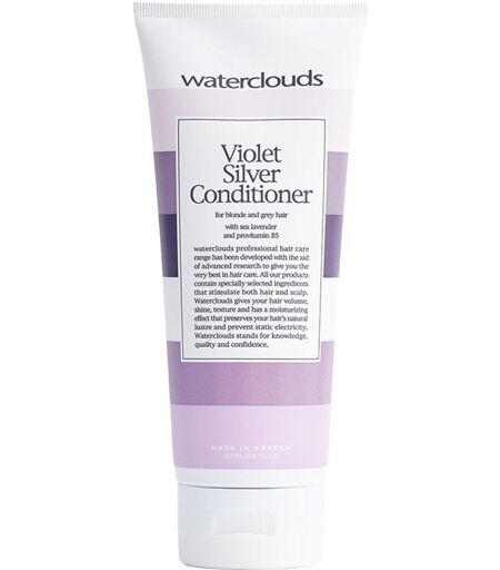 Waterclouds Violet Silver Conditioner er en blødgørende og udglattende silverconditioner, som er rig på violette pigmenter, der neutraliserer de uønskede gule toner i et blondt eller gråt hår. Denne balsam er beriget med lavendel, som er med til at beroliger dit hår, fjerne statisk elektricitet og give det en vidunderlig glans og tekstur. Derudover er den rig på provitamin B5, som holder fugten inde og beskytter dit hår mod udtørring. Fordele: Silverconditioner Til blondt og gråt hår Neutraliserer gule toner Beroliger og fugter Statisk elektricitet Giver glans og tekstur Vegansk Anvendelse: Vask først håret med Waterclouds Violet Silver Shampoo Påfør balsammen i længderne Lad virke i 1-2 minutter Skyl grundigt Ingrediensliste: Aqua, Cetyl Alcohol, Stearyl Alcohol, Behenamidopropyl Dimethylamine, Hydroxypropyl Starch Phosphate, Methylpropanediol, Hydrolyzed Rhodophycea Extract, Limonium Gerberi Extract, Panthenol, Glycereth-2 Cocoate, Dipalmitoylethyl Hydroxyethylmonium Methosulfate, Acid Violet 43, Mica, Lactic Acid, Titanium Dioxide, Phenoxyethanol, Caprylyl Glycol, Parfum ...