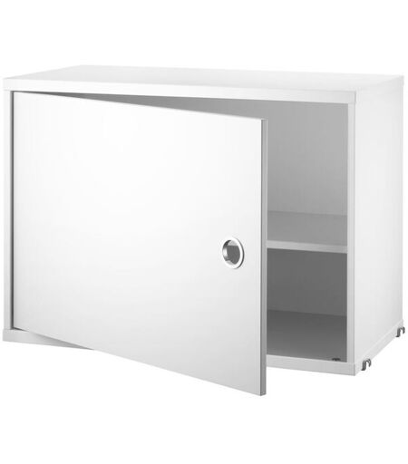 String Furniture Cabinet W. Swing Door 58x42 cm - White Flot og funktionelt skab med svingdør fra String Furniture. Skabet passer sammen med alle paneler med en dybde på 30 cm fra String. Det giver noget visuelt og praktisk at tilføje dette element til din reol. Skabslågen kan monteres på begge sider, så det åbner den vej der passer bedst ind i jeres rum. Designer: String Furniture Mål: B: 58 mc H: 42 cm D: 30 cm Materiale: Lakeret MDF Vedligeholdelse: Tør overfladen over med en fugtig klud. ...