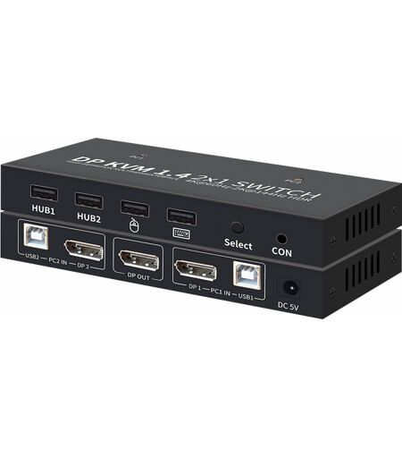 NÖRDIC KVM-switch er en praktisk løsning til at forbinde to computere med DisplayPort-udgang til en DisplayPort-skærm og et sæt mus og tastatur osv. Med et enkelt tryk kan du skifte mellem computerne, og alle USB-drev deles. Den kan skiftes med den medfølgende boks, der kan placeres på et bord i en afstand af ca. Switchen har fire USB A 2.0-porte, der kan bruges til at tilslutte en mus, tastatur, harddisk eller USB-stick. Understøttelse af trådløs mus og tastatur. Support til Windows, MacOS, Linux, ChromeOS. To USB-kabler mellem switch og pc medfølger 1m. Plug & Play kræver ingen drivere. Drives af USB-oplader ved 5V 2A (strømadapter medfølger ikke). Tekniske specifikationer:Input: 2x DisplayPort 1.2 2x USB-B 2.0 1x DC 5V2AOutput: 1x DisplayPort 1.2 4x USB-A 2.0Video:Opløsninger op til: 3840x2160 60Hz 3440x1440 60Hz 2560 x 1440 120 Hz 1920 x 1080 180 HzBithastighed: 21,6 GbpsDatahastighed: 17,28 GbpsHDCP/DPCP: 2.2HBR2HDR: 10Farveformat: RGB, 4:4:4, 4:4:2, 4:2:0, 4:0:0Farvedybde: op til 16 bpcLyd:DP; PCM 2.0/5.1/7.1 Dolby TrueHD, Dolby Atmos, DTS-HD Master Audio, DTS:XMåde at tænde på: Knap på kontakten, ekstern kontrolTrådløs mus og tastaturunderstøttelse: RF, Bluetooth (nogle specielle spil- og multimedietastaturer og -mus kan være inkompatible)Operativsystem: Windows 11/10/9/8/7/XP/Vista, MacOS, Linux, Ubuntu, FedoraStrøm: DC 5V/2A, (kabel inkluderet, ikke strømforsyning)Miljø: 0°C til 45°C i brug, -20°C til 70°C ved opbevaringMål: 146x62x20 mmVægt: 210 gFarve: SølvMateriale: AluminiumDrivere: Ingen drivere, Plug & PlayIndhold: 1x KVM-101 2x USB-B til A 2.0 kabler 1x ekstern kontrol for at skifte 1x Strømkabel 5V2A 1x Manual ...