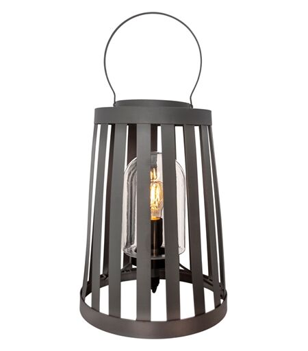 By Rydéns Delphia Bord/Gulvlampe H:60cm - Sandgrå Delphia fra By Rydéns er en fantastisk lampe til udendørs brug. Lampen ligner en lanterne med et håndtag, og perfekt til dig der er på udkig efter belysning til altanen eller gårdhaven - eller måske til haven? Lampen er IP44 klassificeret, hvilket betyder at den kan holde til at stå udenfor. Den er fremstillet af metal og har naturligvis en rustbeskyttelse. Lampen fås også i farven sandsort Materiale: Metal Mål: H:60 cm Ø: 30 cm Vægt: 3,37 kg Farve: Sandgrå 5 meter sort gummiledning Lyskilde: E27 LED max 40W - Ikke inkluderet 230V IP44 ...