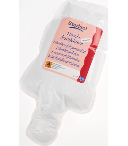 Sterisol hånddesinfektion Hånddesinfektion anvendes på arbejdspladser med høje krav til hygiejne samt for at forhindre smittespredning. Hånddesinfektion er ca. ti gange mere effektiv end håndvask med almindelig sæbe. Sterisol etanolbaseret hånddesinfektion gel 81%Med glycerin, der modvirker udtørring, og sikrer at produktet kan anvendes mange gange om dagenPose med 700ml, passer til Sterisol dispensere ...