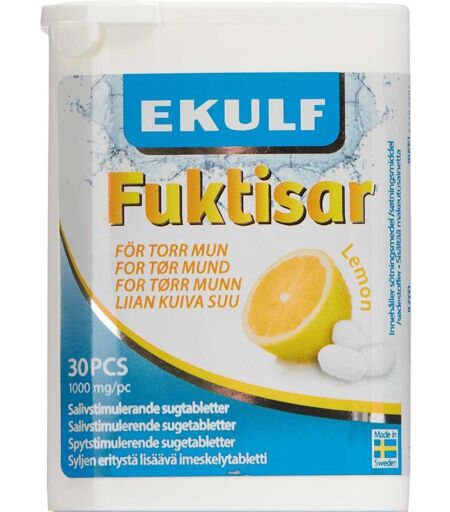 PRODUKTET EKULF FUKTISAR ER KLASSIFICERET SOM MEDICINSK UDSTYR. Ekulf fuktisar lemon er sukkerfrie sugetabletter, der effektivt stimulerer spytproduktionen. Anvendelse: Ekulf fuktisar lemon kan anvendes efter behov. ...
