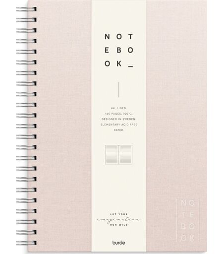 Burde spiral notesbog med tekstilpræget omslag, A4 Du får her en stilfuld spiralbog, der er ideel til at samle dine tanker, ideer og vigtige notater i hverdagen. Denne spiralbog fra Burde er designet med et klassisk omslag i tekstilpræg, der kombinerer elegance med funktionalitet. Indholdet består af 100 g linjeret, cremefarvet papir af højeste kvalitet, som er både syrefrit og aldersbestandigt. Spiralryggen giver maksimal fleksibilitet, så du nemt kan skrive på hver side, uanset hvor du er. Perfekt til både professionelle opgaver og personlige notater. Spiralbundet notesbog med omslag i tekstilpræg Farve: Lyserød A4 format: 30,1 x 23 cm Linjeret 160 sider Papirkvalitet: 100 g (syrefrit) FSC-certificeret papir Mayland Burde - kalendere og notesbøger siden 1900-tallet Mayland-Burde producerer hvert år millioner af kalendere og notesbøger til alle formål og har siden 1900-tallet leveret kalendere til danskerne. Sortimentet er baseret og sammensat på baggrund af et ønske om et bredt og tidssvarende udvalg af kalendere, notesbøger og tilbehør. Hos Mayland-Burde bestræber man sig nemlig på at imødekomme kundernes mange forskellige ønsker og behov og har en passion for at kunne levere produkter der skaber både glæde og overblik i hverdagen, på jobbet og på studiet. ...