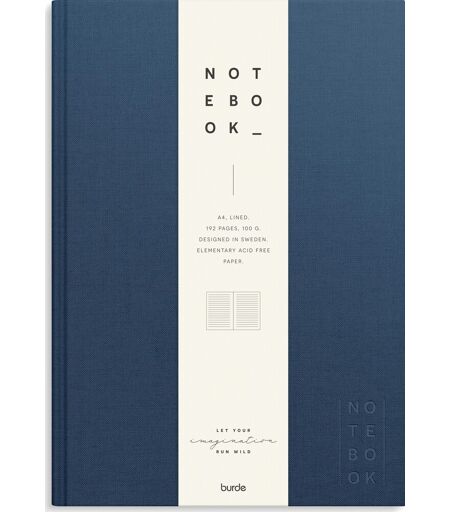 Burde Notesbog Tekstil A4 Linj. Mørkeblå