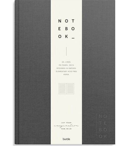 Burde Notesbog Tekstil A4 Linj. Mørkegrå
