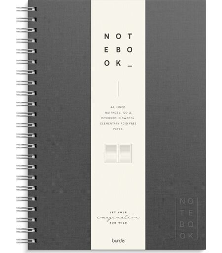 Burde Spiralbog Tekstil A4 Linj. Mørkegrå