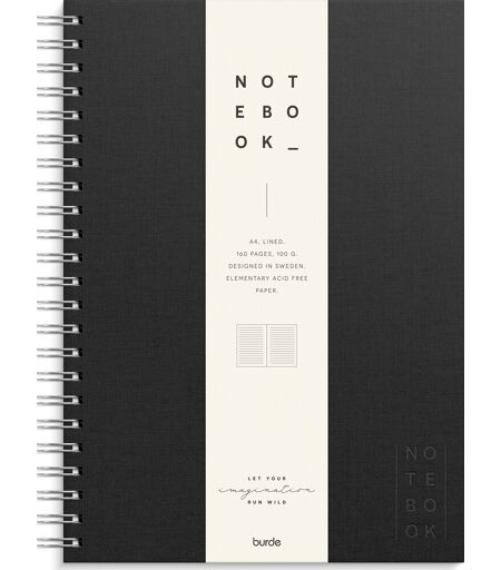 Burde Spiralbog Tekstil A4 Linj. Sort