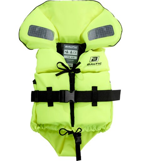 Delade flytkroppar för bästa passform. Stor reflexförsedd krage som skyddar barnets huvud. Grenbandsbyxa som kan knäppas i två lägen för bästa passform. Flytvästen har kraftigt midjeband och dragkedja. Övre och undre knytband samt reflexer på kragen. Visselpipa under kragen, lättåtkomligt lyfthandtag i nacken. Tåligt high-visibility-tyg. Storlek: 3-15kg ...