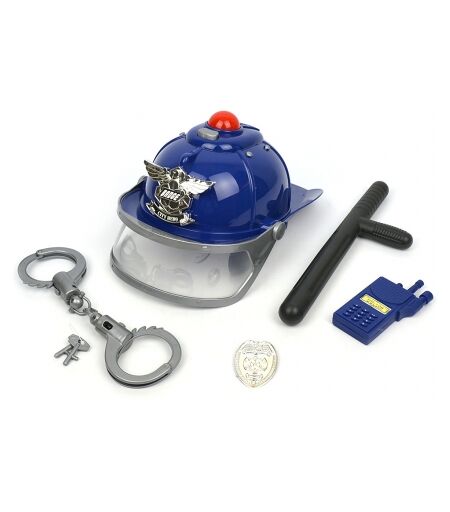 Politiet sætter alt, hvad en politibetjent har brug for i løbet af en dag på jobbet. Dette sæt indeholder 5 dele. Hjelm med visir, stafet, håndjern med nøgler, politiskilt og radio. Legetøjet er lavet af plastik. Anbefales IKKE til børn under 3 år ...