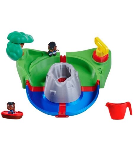 Med Sploshy Volcano AquaPlay-sættet kan børn fra 18 måneder opdage mange spændende legeelementer. Dette kærligt designede badelegetøj stimulerer ikke kun fantasien hos de små opdagelsesrejsende, men også deres motorik. Fast klæbende sugekopper giver sikker spillesjov på enhver glat overflade. I hjertet af sættet er den vulkanformede skumgenerator, der drives af en børnevenlig luftpumpe og en blanding af vand og shampoo til fremstilling af skumlava. Den tilstødende lille sø føder vandturen og skaber dynamiske strømme. Det ekstra legetøj – en praktisk vandkande, et grønt træ, en båd og den elskelige bjørn Bo som AquaPlay-figur – fuldender sættet og gør hver dag med svømning til en glædelig oplevelse. Således bliver badetiden en tid med inspiration og fornøjelse. ...