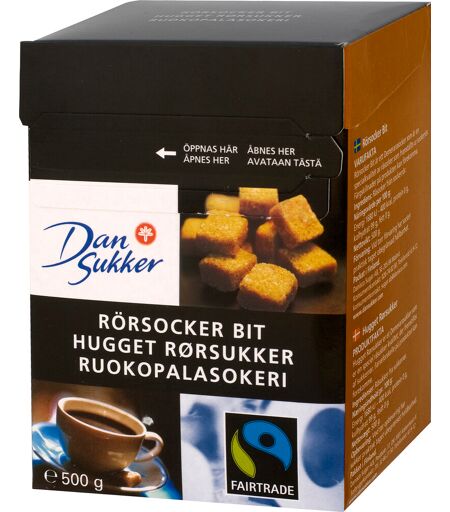 Fairtrade - med omtanke på omverdenen Hugget rørsukker fra Dan Sukker, Fairtrade mærket. Pakke med 500 g ...