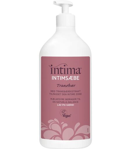 Intima Intimsæbe Tranebær er en mild sæbe, som er udviklet specielt til den intime zone. Dette område har en naturligt lavere pH-værdi i forhold til resten af kroppen, der let kan forstyrres og medføre gener, som irritation og tørhed, hvis man bruger en normal kropssæbe. Derfor er Intima Intimsæbe Tranebær ideel at bruge i badet til den daglige intimhygiejne. Den er beriget med mælkesyre og tranebærekstrakt, som sammen med en lav pH-værdi på 4 hjælper med at opretholde den naturlige balance i intimområdet. Hold din intimzone ren og i balance med denne skånsomme Intima Intimsæbe Tranebær. Fordele: Intimsæbe Mild og skånsom Lav pH-værdi på 4 Beriget med mælkesyre og tranebærekstrakt Opretholder den naturlige balance Beskytter mod irritation og udtørring Mild duft Til daglig brug Til alle hudtyper Vegansk Anvendelse: Vask først kroppen, som du plejer Kom herefter en passende mængde sæbe på en våd vaskeklud eller fugtede hænder Vask intimrådet med sæben Skyl området grundigt med vand Kan bruges på daglig basis Bør kun anvendes på de ydre kønsdele, ikke de indvendige Undgå kontakt med øjnene Ingrediensliste: Aqua, Cocamidopropyl Betaine, Lauryl Glucoside, Lactic Acid, Coco-Glucoside, Glyceryl Oleate, Vaccinium Macrocarpon Fruit Extract, Tocopherol, Glycerin, Xanthan Gum, Hydrogenated Palm Glycerides Citrate, Citric Acid, Sodium Benzoate, Potassium Sorbate, Sorbic Acid, Parfum. ...