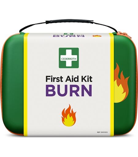 Praktisk og smart førstehjælpskasse til forbrændinger og brandsårMed denne førstehjælpskasse fra Cederroth får du et mobilt førstehjælpskit til at pleje og lindre forbrændinger og brandsår, så du altid har hjælpen indenfor rækkevidde, hvis uheldet skulle være ude. Forbrændingskassen passer perfekt til arbejdspladser med stor risiko for forbrændinger. Den er derfor god at have ved hånden i virksomheder og industrier indenfor byggeri, metal, kemi, papir og levnedsmidler men er også velegnet indenfor hotel- og restaurationsbranchen.Forbrændingskassen indeholder forskellige Burn Gel produkter, som giver køling og smertelindring ved første- og andengradsforbrændinger, samt forbrændingskompresser i 3 forskellige størrelser, inklusive et stort kompres/ansigtsmaske. Førstehjælpskassen består af en kuffert i slidstærkt og gummilignende materiale med en mat overflade, med gennemsigtige plastlommer til opbevaring af produkterne, så du hurtigt og nemt kan finde det nødvendige udstyr. Kufferten beskytter desuden produkterne mod støv, fugt og snavs, så førstehjælpsudstyret holdes hygiejnisk rent, så det altid er klar til brug.Den smarte førstehjælpskuffert har et praktisk og justerbart burrebåndshåndtag, så det er nemt at fastgøre kufferten og have den med omkring, så du altid har hjælpen lige ved hånden.Alle produkterne i førstehjælpskassen er forsynet med tydelige og selvforklarende instruktioner, så du altid har de bedste forudsætninger for at yde den bedst mulige førstehjælp.Førstehjælpskassen har desuden klare og synlige signalfarver (grøn, gul og orange) samt en tydelig flamme på forsiden, så du nemt kan se den på lang afstand og hurtigt kan hjælpe, hvis en nødsituation med forbrændingsskader eller brandsår skulle opstå.Mål (BxHxD): 305 x 245 x 86 mm Referencenummer: REF 51011013Forbrændingskassen indeholder: 1 stk. Cederroth Burn Gel Spray 100 ml (REF 51011005)1 stk. Cederroth Burn Gel Forbrændingskompres/ansigtsmaske (REF 51011014)1 stk. Cederroth Burn Gel Forbrændingskompres 20x20 cm (REF 51011015)4 stk. Cederroth Burn Gel Forbrændingsbandage 10x10 cm (REF 901900)1 stk. Cederroth 4-i-1 Blodstopper (REF 1910)1 stk. Fæste6 stk. Elastiske Fikseringsbånd1 stk. Førstehjælpssaks (REF 270002)2 par handskerFørstehjælps- og forbrændingsinstruktioner ...