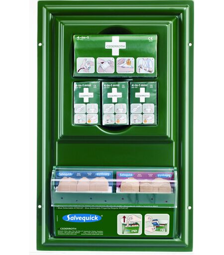 Professionel førstehjælp i miniformat Cederroths Førstehjælpsstation Mini er et godt basissæt til at klare de almindelige skrammer på arbejdspladsen, og et stærkt supplement til andet førstehjælpsudstyr. Førstehjælpssættet i miniformat indeholder forskellige plastre i den høje Salvequick-kvalitet, og Cederroth 4-i-1 blodstoppere i både almindelig og mini format. Blodstopperne er sterile universalforbindinger med fire funktioner: trykforbinding, dækforbinding, brandssårsforbinding og midlertidig støtteforbinding. Cederroth miniblodstoppere er specielt velegnede til fingre og tæer.Mål (BxHxD): 25x40x5 cmReferencenummer: REF 191400 Førstehjælpsstation Mini indeholder: 1 stk. Salvequick Plasterdispenser inkl.40 Salvequick Tekstilplaster (REF 6444)45 Salvequick Plastplaster (REF 6036)1 stk. Cederroth 4-in-1 Blodstoppere (REF 1910)3 stk. Cederroth 4-in-1 mini Blodstoppere (REF 1911) ...