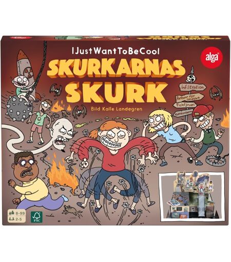 Skurkarnas Skurk av Alga i samarbete med I Just Want To Be Cool- Testa om du har vad som krävs för att bli den ultimata skurken! Välkommen till Skurkskolan, där de smartaste och mest lömska skurkarna tränas för att bli den ultimata mästarskurken! "Skurkarnas Skurk" är ett roligt och spännande brädspel där spelarna tävlar om att samla på sig flest skurkpengar genom att klara av fyra utmanande och kluriga lektioner. I spelet får du och dina vänner kämpa er igenom olika "lektioner" som ficktjuveri, parkour på en hängbro, att navigera genom farliga katakomber och att knäcka koder i en infiltration. Men se upp det krävs både list, ett gott minne och en vilja att fullständigt krossa dina motståndare för att vinna. Antal spelare: 2-5 Rekommenderad ålder: 8 år och uppåt Speltid: Cirka 30 minuter Innehåll: Spelplan, spelpjäser, tärning, kort, brickor och skurkpengar Varje lektion är ett minispel i sig, och den som lyckas bäst i alla fyra blir den sanna mästarskurken! Kommer du att kunna överlista dina motspelare och ta hem segern? Spänning, skratt och en smula ondskefullt hån väntar i "Skurkarnas Skurk" spelet där den lömskaste vinner. "Skurkarnas Skurk" är inte bara ett spel, det är en resa genom en värld av galna upptåg och skurkerier. Kommer du att bli mästarskurken eller slås ut i sista stund? Endast den som spelar sina kort rätt kan ta hem titeln! ...