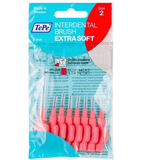 TePe Extra Soft, 8 stk., Interdentalbørster unisex, Mellemrumsbørste TePe Extra Soft er en uundværlig del af mundhygiejne. Den kommer ind på steder, der er vanskelige at nå, og forebygger karies. Egenskaber: sørger for en perfekt rensning af mellemrummene garanterer nem håndtering og anvendelse Brugsvejledning: Placér tandbørste i mellemrummene, og bevæg den frem og tilbage. ...