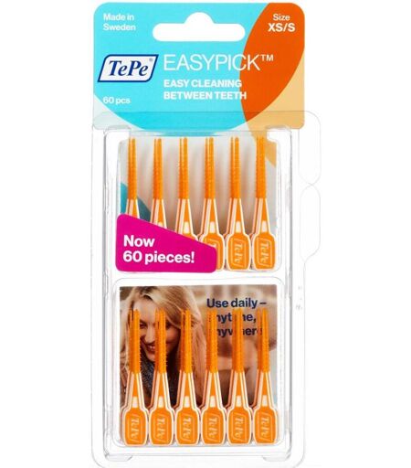 Tepe Easypick er en tandstik, der gør det enkelt at rengøre mellem tænderne. Den er holdbar og flexibel med et bekvemt greb og en silikoneoverflade, der er skånsom mod gummerne. Der medfølger en lille opbevaringsæske, så man nemt og praktisk kan have Tepe Easypick med på farten. Dosis og Anvendelse Bør anvendes dagligt for optimal fjernelse af plak og en frisk mund. ...