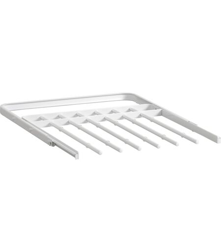 1 stk. bukseudtræk i hvid til Elfa opbevaringssystem Bukseudtrækket er den perfekte løsning til en organiseret og nem adgang til dine bukser. Fuldend din garderobeløsning med et let overblik. De skridsikre ringe på stængerne, holder dine bukser sikkert på plads. Klikkes let på plads mellem 2 stk. klik-ind konsoller, med en længde på 40 cm. OBS: klik-ind konsoller påkræves for montering af bukseudtrækket. Specifikationer: Mål (L x D x H): 449 x 430 x 24 mm 1 stk. bukseudtræk til Elfa opbevaringssystem. Vi kan skaffe mange flere dele i opbevaringssystemet, kontakt os for flere muligheder. 10 års garanti Elfa tilbyder 10 års garanti på deres produkter, gælder ved normal brug og anvendelse. Garantien gælder fra datoen af købet. Skulle du være uheldig at en del er gået i stykker, så kontakt da vores kundeservice som sidder klar til at hjælpe dig. Sørg for at tage billeder af produktet som er gået i stykker, gerne fra ca. 1 meters afstand og et billede helt tæt på skaden, gerne med en mindre genkendelig genstand ved siden af, så måleforholdet kan tydes (f.eks. en kuglepen). Hav også gerne dit ordrenummer/faktura fra købet klar. ...