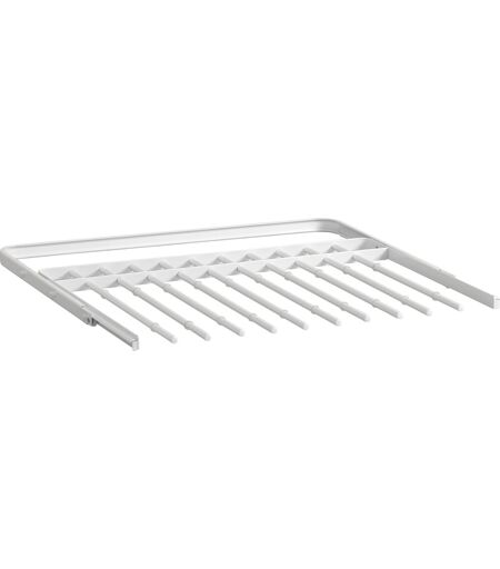 1 stk. bukseudtræk i hvid til Elfa opbevaringssystem Bukseudtrækket er den perfekte løsning til en organiseret og nem adgang til dine bukser. Fuldend din garderobeløsning med et let overblik. De skridsikre ringe på stængerne, holder dine bukser sikkert på plads. Klikkes let på plads mellem 2 stk. klik-ind konsoller, med en længde på 40 cm. OBS: klik-ind konsoller påkræves for montering af bukseudtrækket. Specifikationer: Mål (L x D x H): 605 x 430 x 25 mm 1 stk. bukseudtræk til Elfa opbevaringssystem. Vi kan skaffe mange flere dele i opbevaringssystemet, kontakt os for flere muligheder. 10 års garanti Elfa tilbyder 10 års garanti på deres produkter, gælder ved normal brug og anvendelse. Garantien gælder fra datoen af købet. Skulle du være uheldig at en del er gået i stykker, så kontakt da vores kundeservice som sidder klar til at hjælpe dig. Sørg for at tage billeder af produktet som er gået i stykker, gerne fra ca. 1 meters afstand og et billede helt tæt på skaden, gerne med en mindre genkendelig genstand ved siden af, så måleforholdet kan tydes (f.eks. en kuglepen). Hav også gerne dit ordrenummer/faktura fra købet klar. ...