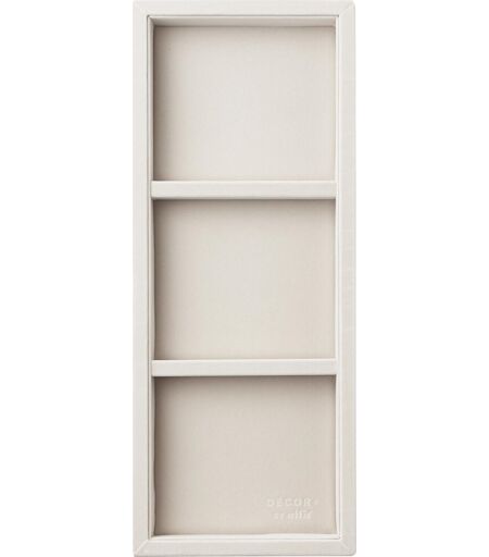 Skuffeindsats til Elfa Decor skuffe, grå Organiser dine Elfa Decor skuffer med denne praktiske indsats. Indsatsen har en lækker velourforing og flere rum, så du kan let kan organisere og opbevare smykker, ure, accessoires og andre mindre genstande. Følgende kombinationer til fyldning af en grund skuffe med målene B60/D40 er mulige: Stor+lille Lille+lille+lille Specifikationer: Dimensioner (BxDxH): 156x386x38 mm Antal rum: 3 10 års garantiElfa tilbyder 10 års garanti på deres produkter, gælder ved normal brug og anvendelse. Garantien gælder fra datoen af købet. Skulle du være uheldig at en del er gået i stykker, så kontakt da vores kundeservice som sidder klar til at hjælpe dig. Sørg for at tage billeder af produktet som er gået i stykker, gerne fra ca. 1 meters afstand og et billede helt tæt på skaden, gerne med en mindre genkendelig genstand ved siden af, så måleforholdet kan tydes (f.eks. en kuglepen). Hav også gerne dit ordrenummer/faktura fra købet klar. ...