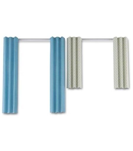 Gardinsæt til Lundby Småland Dukkehus. De turkise er ca. 13 cm lange, de hvide prikkede er ca. 9 cm lange. Stangens bredde er ca. 11 cm. Gardinerne sidder fast, det vil sige de kan ikke lukkes eller åbnes yderligere og er forstærket med plast nedefra. Anbefales fra 4 år. ...
