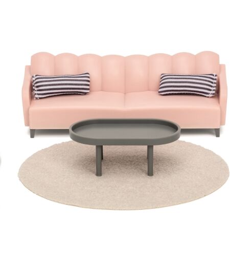 Ett rum för alla! I vardagsrummet kan hela dockhusfamiljen umgås och ha kul tillsammans. En snygg soffa med två medföljande kuddar. Soffbordet har en smart liten kant som gör att saker lättare håller sig på plats. I det här fina setet ingår också en rund matta att placera på golvet, eller varför inte använda den som en mysig filt? Med Lundby Basic kan du snabbt och lätt möblera ditt Lundby dockhus. Uppfyller kraven i leksaksstandarden EN71 och gällande kemiska regelverk REACH och SVHC. ...