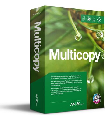 Multicopy Original Kopipapir A4/500stk/80gram/Hvidt uden huller Multicopy er ikke bare skånsomt for miljøet. Det er ikke bare helt hvidt og ser godt ud. Det er ikke bare problemfrit og pålideligt, men opfylder alle miljøkrav, af respekt for miljøet samt den tid og indsats, du har lagt i det dokument, der skal udskrives. Multicopy er kvalitetspapir til alle dine kontormaskiner. Faktisk er det det eneste papir, der er brug for på arbejdspladsen. Det er nemt at indkøbe og anvende, så du får glade kunder og kolleger. Uanset hvilken MultiCopy variant du vælger, får du pålideligt kopipapir i absolut topkvalitet. Kvaliteten fungerer perfekt og gengiver tydeligt både billeder og tekst i s/h og farve. Velegnet til kopimaskiner, laser og ink-jet printere. Miljørigtigt kopipapir der er Svanemærket, Ecolabel og TCF godkendt Kopipapiret til dig, som vil have en grøn samvittighed Et hvidt og ensartet papir til det daglige forbrug Velegnet til dobbeltsidet print og kopi, takket være lav gennemsigtighed (høj opacitet) Multicopy Original giver færre driftsproblemer A4 - 80 gram - 500 ark, 5 pakker pr. karton Dette produkt er lavet af papir fra ansvarligt drevne FSC®-certificerede skove og andre kontrollerede kilder ...