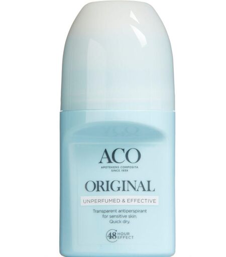 ACO Deo Original Roll-On er en uparfumeret mild og effektiv antiperspirant med 48 timers effekt, så du føler dig ren, frisk og selvsikker hele dagen. Alle vores deodoranter er dermatologisk testet, yder effektiv beskyttelse, er milde, hurtigtørrende og beregnet til følsom hud. Dosis og Anvendelse Smøres under armen. ...