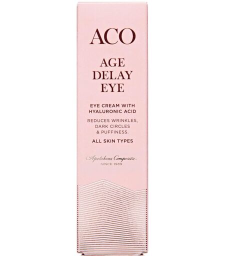 ACO Face Age Delay Eye Cream er en let anti-age øjencreme til alle hudtyper som genfugter i dybden. Beskytter og styrker den tynde hud omkring øjnene. Mindsker rynker, mørke rander og poser under øjnene. Skånsom mod huden. Dermatologisk og oftalmologisk testet. Uden parfume. Dosis og Anvendelse Påføres forsigtigt omkring øjnene morgen og aften. ...