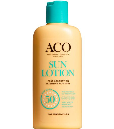 ACO Sun Lotion SPF50 er en intensivt fugtgivende solcreme, med meget høj beskyttelse til kroppen, der giver øjeblikkelig beskyttelse mod solens UVA- og UVB-stråler. Cremen absorberes hurtigt i huden og føles ikke fedtet på huden. ACO Sun Lotion SPF50 er til dig, der ønsker solbeskyttelse, der passer til alle hudtyper og giver øjeblikkelig beskyttelse mod solens UVA- og UVB-stråler. Solbeskyttelse fra ACO-serien giver masser af fugt til din hud, så den kan bruges af hele familien. Husk at beregne nok solcreme, hvis du skal på ferie. ...