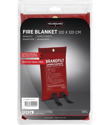Housegard Brandtæppe - det sikre valg til dit kontor eller køkken Det stærke brandtæppe fra Housegard er et sikkert valg mod brand i en lang række effekter. Hæng det f.eks. op i dit køkken, og du har en god sikkerhed for at slukke brande i f.eks. gryder, på komfuret og i køkkenredskaber. Hæng det op på kontoret eller i hjemmet, og du har et godt og effektivt brandslukningsredskab ved hånden mod brande i f.eks. møbler, senge eller tøj. Brantæppet måler 120 x 120 cm som er den anbefalede størrelse uanset sted og placering af dit brandtæppe. Mål: 120 x 120 cmSilikonebelægning Certificering: EN 1869 : 1997 Ideelt til brandslukningVægt: 1,20 kgGaranti 5 år ...