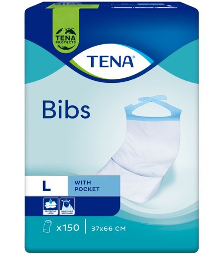 TENA engangs-spiseservietter er designet til at yde værdig og hygiejnisk beskyttelse ved måltiderne. De praktiske engangs-spiseservietter til voksne beskytter tøjet mod spildt mad og pletter. Spiseservietterne har et beskyttende og afvisende lag, der fungerer som et effektivt skjold mod væsker, og en forlomme det opsamler spildt mad. Let at bruge med justerbare bånd, der bindes i nakken og holder servietten på plads, tæt mod halsen. ...