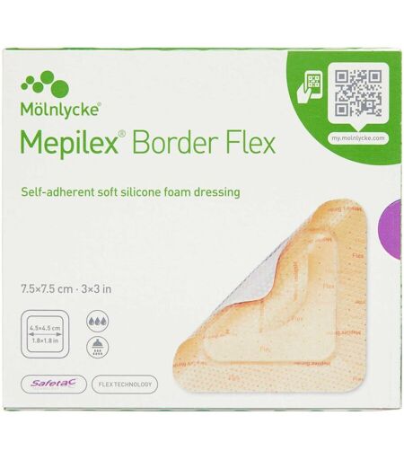 Mepilex Border Flex er udviklet til en bred vifte af væskende sår såsom tryksår, ben- og fodsår, traumatiske sår (f.eks. rifter) og operationssår. Mepilex Border Flex kan også anvendes på tørre/nekrotiske sår sammen med geler. Mepilex Border Flex reducerer postoperativ blæredannelse og kan også bruges som led i en profylaktisk behandling, hvor produktet er med til at forhindre hudskader som f.eks. tryksår. Også velegnet til hudafskrabninger og alle andre sår, der ikke væsker meget. Giver en hurtigere opheling af såret og en pænere ardannelse. Mepilex Border Flex er brusetæt, men det kræver, at yderkanten af produktet slutter helt tæt til huden. Produktet hæfter med det unikke og bløde silikoneklæb Safetac. Produktet efterlader ingen klæberester på huden og gør ikke ondt at tage af. Tyndt selvklæbende alt-i-et plaster, som huden kan ånde igennem. Til let- og ikke væskende sår. Sårpude måler: 4,5 x 4,5 cm. Dosis og Anvendelse Rens såret og tør huden.Vælg en størrelse, hvor bandagen overlapper huden med mindst 1-2 (3-5 cm for større bandager). Bandagen kan klippes til, så den passer.Fjern den første beskyttelsesfilm og sæt den klæbende side på såret.Fjern den resterende beskyttelsesfilm og udglat bandagen.produktet kan fikseres med anden bandage, hvis det er nødvendigt.Intervallet for bandageskift kan vare flere dage.Mepilex Border Flex kan blive siddende i op til syv dage afhængigt af sårets og den omkringliggende huds tilstand eller i henhold til de kliniske retningslinjer. Ved anvendelse på sår: • Mepilex Border Flex kan anvendes under kompressionsbandager. • Da Mepilex Border Flex bevarer et fugtigt sårhelingsmiljø, som understøtter oprensning af såret, kan der forekomme en øget størrelse af såret i starten. Det er normalt og kan forventes. • I begyndelsen kan det være nødvendigt at skifte bandagen hyppigere, fordi en ændring i behandlingen kan resultere i en forøgelse af væske. ...