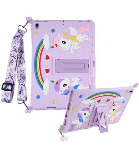Apple SKALO iPad 10.2 Stødresistent Unicorn Rainbow silikone Cover - Lilla