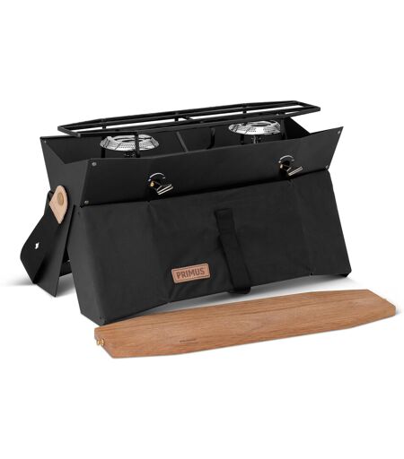 Onja Stove fra Primus er et kompakt og helt unikt campingkøkken med to brændere og detaljer, der minder om klassisk camping- og friluftsliv. Et perfekt køkken til udflugter til den nærliggende park samt weekendture med kanoen. Den foldbare stel bidrager i udfoldet tilstand med god stabilitet og ekstra vindbeskyttelse til køkkets to brændere. Begge brændere justeres individuelt og har kapacitet til at koge en liter vand på under fire minutter. Gasbeholdere fastgøres direkte på hver brænder, inden for stellet. Det betyder, at der kræves to gasbeholdere til tilberedning med begge brændere samtidigt.Låg i eg beskytter brænderne under transport og fungerer fremragende som skærebræt og serveringsfad. Stoffet, der omslutter stellet, er lavet af slidstærkt G1000-materiale og kan nemt fjernes til rengøring. Integreret skulderrem gør det nemt at kaste Onja over skulderen og tage med på hverdagsoplevelser med familie og venner.Onja Stove Duo leveres med en duo-ventil, der passer til de fleste gasbeholdere med ventil på markedet, både med og uden gevind.Dobbelt brænder til madlavning med to kogekar samtidigt ved forskellige temperaturerTo gasbeholdere fastgøres på hver sin brænder for brug af begge plader samtidigtFoldbart stel for god stabilitet og ekstra vindbeskyttelseIntegreret skulderrem for nem transportStof i slidstærkt G1000 omkring stellet, der nemt kan fjernes til rengøringLåg i eg, der beskytter brænderne under transport og fungerer som skærebrætTilgængelig med Duo-ventil til brug af gas med forskellige typer tilslutningerUdviklet i Sverige, produceret i EuropaGas medfølger IKKE ...