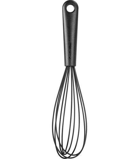 GastroMax Ballon Piskeris Praktisk stort klassisk piskeris. Pisker nemt en masse luft ind i flødeskum, æggehvider mv. Strengene er sat på hver for sig over hinanden, som gør at den yderste streng har frihed til at komme ind i kanter og rundinger i f.eks. gryder. Det komfortable håndtag er udstyret med en tommelfingerstøtte for et sikkert og behageligt greb under madlavning. Tåler temperaturer op til 100°C, velegnet til non-stick køkkengrej. Let at rengøre. Tåler maskinvask. Længde: 28 cm Farve: Sort Materiale: Nylon Fri for BPA Tåler opvaskemaskine ...