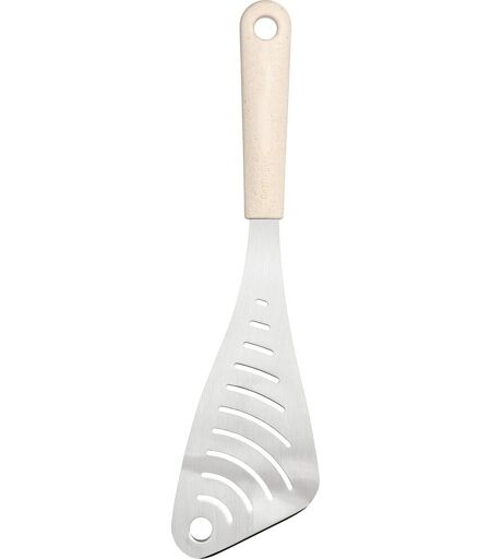 GastroMax™ BIO paletten med huller er et alsidigt redskab, der gør madlavningen lettere. Den brede klinge i rustfrit stål glider nemt ind under maden, hvilket gør den ideel til fx fiskefileter, men også stærk nok til at håndtere større stykker kød. Det slidsede design lader overskydende fedt eller væske løbe fra, så serveringen bliver både ren og kontrolleret. Håndtaget er lavet af 80 % bio-baseret plast, en kombination af sukkerrør og træfibre fra nordisk gran, som sikrer et behageligt greb. Produceret i Sverige og nem at rengøre i opvaskemaskinen. Specifikationer: Mål: 32 x 9 x 2 cm Materiale: Rustfrit stål og skaft i 80 % bio-baseret plast (sukkerrør og nordisk fyrretræsfiber) Fri for BPA Tåler opvaskemaskine Fremstillet i Sverige ...